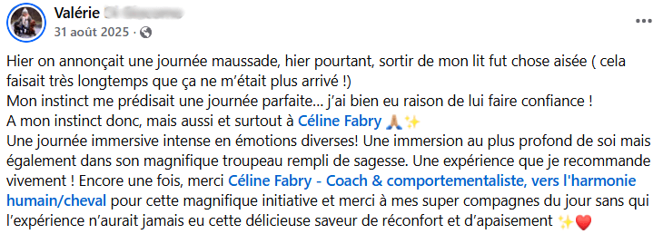 Aujourd’hui, j'ai à coeur d'ouvrir ces espaces au coeur de ma prairie et des mon troupeau, afin de transmettre cette magie à celles et ceux qui souhaitent vivre une expérience enrichissante et pleine de douceur aux côtés des chevaux.
